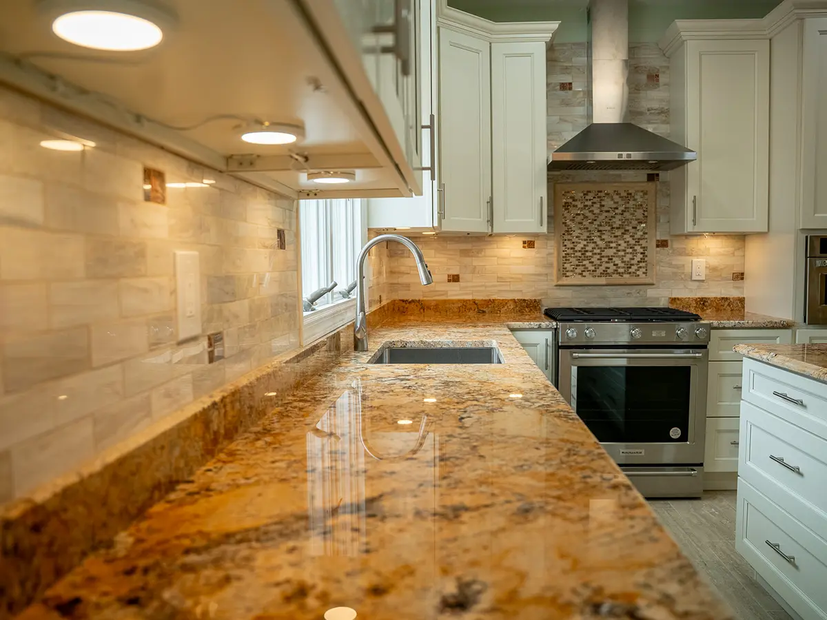 - Installing quartz countertops and 60 sq. ft. of backsplash
